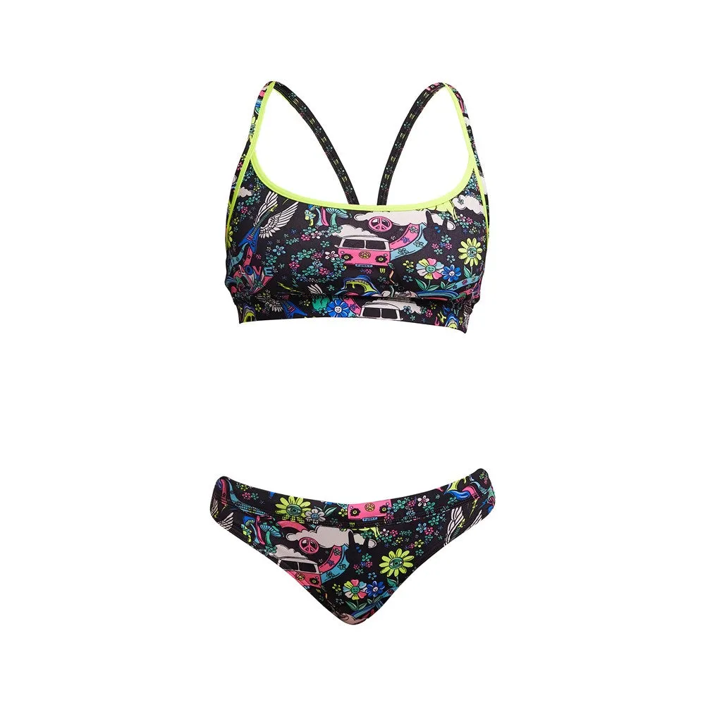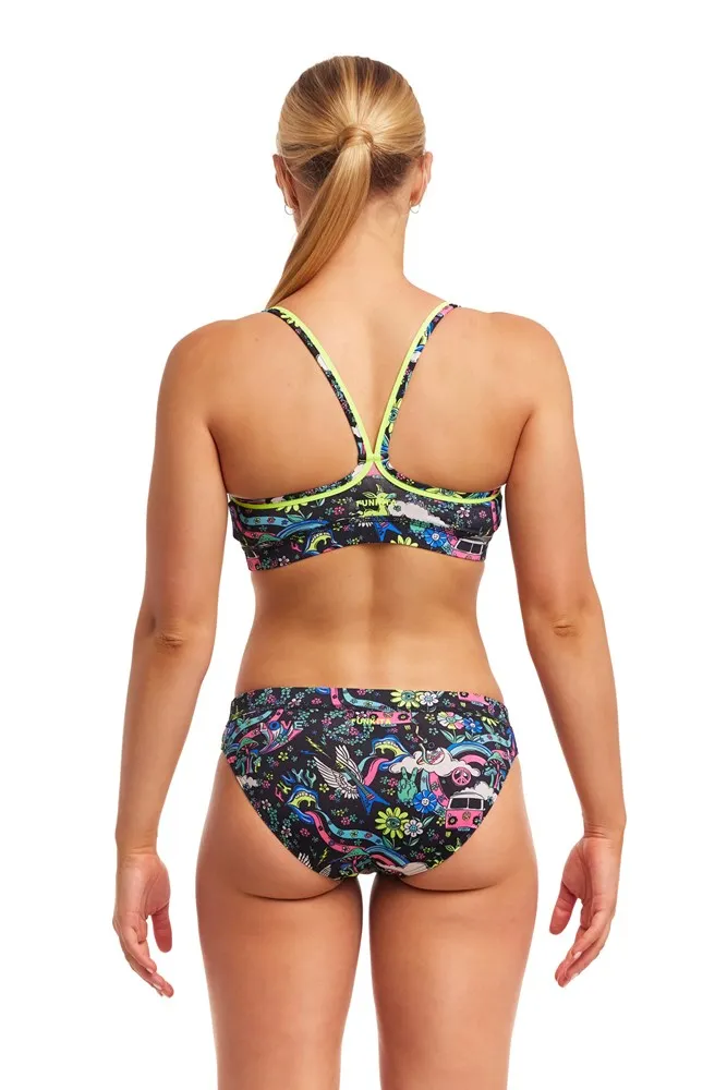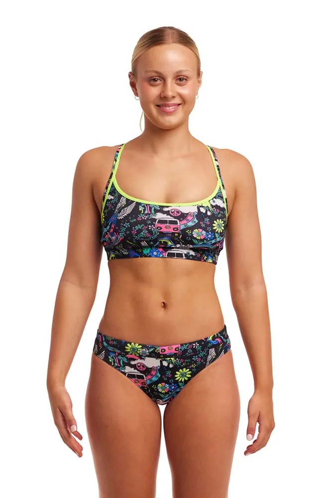 With a firm fitting racer back, double bind shoulder straps plus a wide under bust elastic, I promise to keep you secure and comfortable throughout your swim. I?m perfect for regular swimming and wearing under a wetsuit if you?re open water swimming. I?m sold as a separate so you can mix and match me across sizes and prints with your fave Funkita brief plus I?m made with all the care and love in production that makes me proud to be Funkita. ECO C-INFINITY is the same superior quality polyester construction that you?ve come to trust from our C-Infinity fabric, but manufactured from end-of-life plastic water bottles. Providing 100% chlorine resistance and exceptional colours, ECO C-INFINITY gives a new life to waste, reducing our environmental impact and keeping you swimming day in and day out in the brightest swimwear on the market.